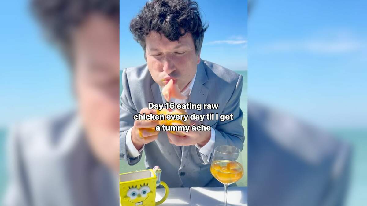 The bold social media star, who only identifies himself as John, embarked on this strange venture on January 19, when he uploaded his first video on the account Raw Chicken Experiment. As the caption indicates, he plans on consuming uncooked poultry until he "gets a tummy ache."